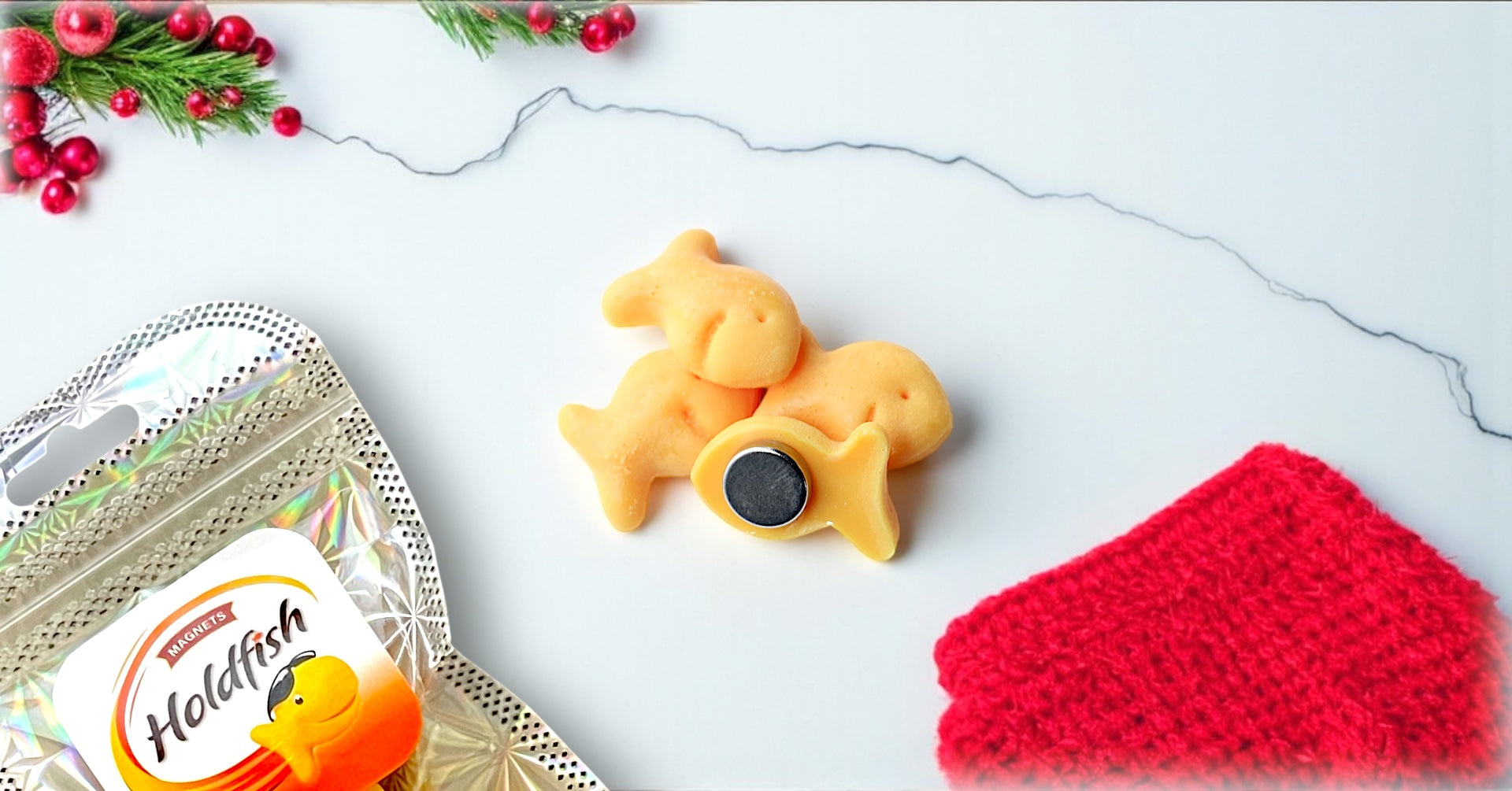 Inspired by the classic Goldfish crackers, Holdfish turns nostalgia into handmade joy. Every piece is crafted to stick, shine, and make you smile a little more every day.